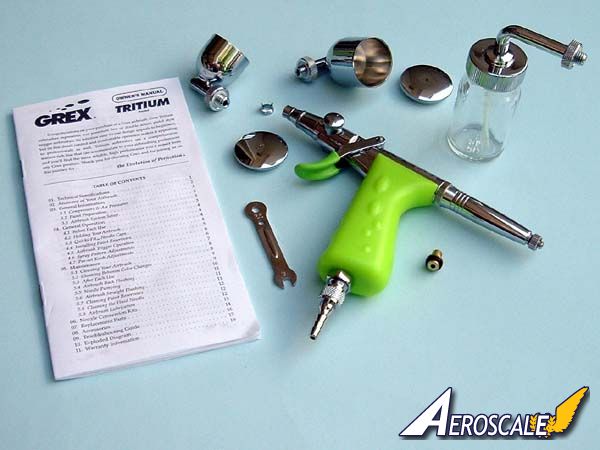 Grex packages this airbrush in their trademark bright lime and black box. Inside the box is a plastic case with a sliding lock securing the lid when closed. The airbrush and accessories are firmly held by foam and further protected by a light plastic fitted insert.