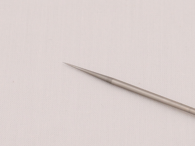 The machining is flawless. Running the airbrush over a cloth, I found no rough spots or snags. The nickel chrome plated exterior is so polished that it took a few tries to photograph it without too much light reflection. The needle is equally finely machined. The trigger operates smoothly. The pre-set adjustment knob, needle lock, and rear handle cap threading is tight and smooth.